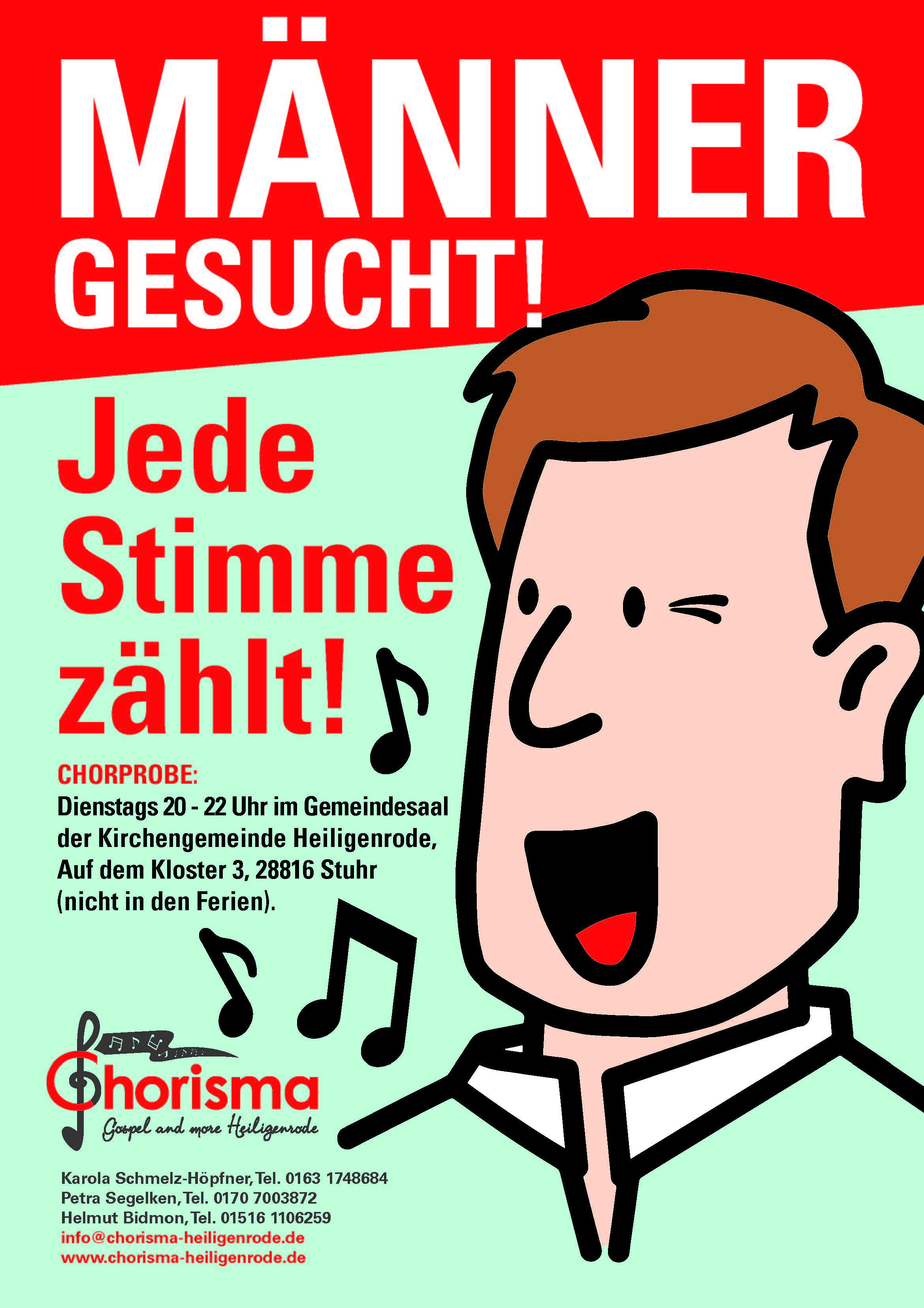 Chorismas Frühjahrskonzerte finden am 1. April 2017 um 19:00 Uhr (Einlass: 18:30 Uhr) in der Klosterkirche St. Marien zu Heiligenrode und am 8. April 2017 um 19:00 Uhr (Einlass: 18:30 Uhr) in der ev. Kirche in Brinkum statt. Der Eintritt ist frei, Spenden erbeten.