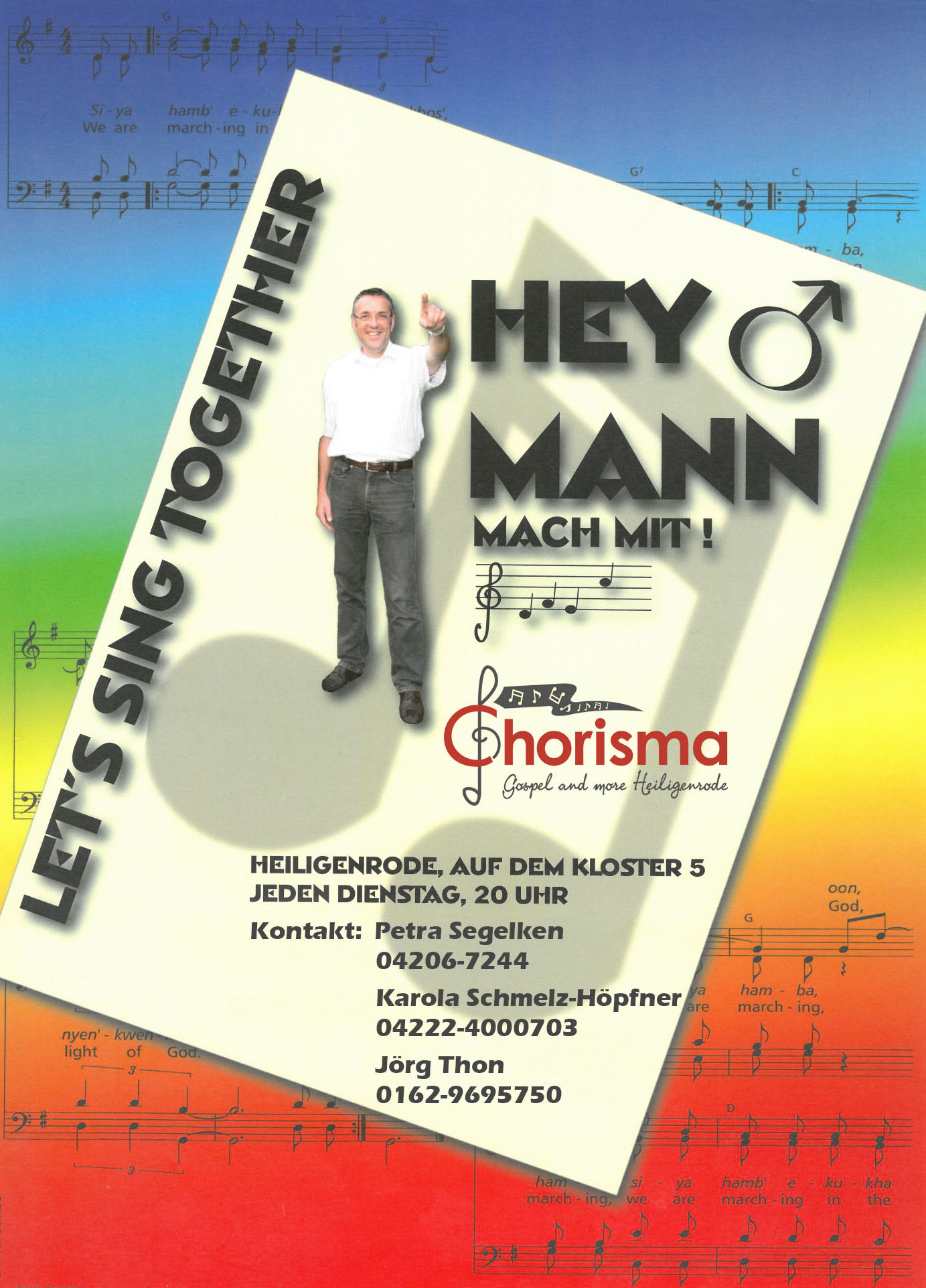 Am 1. Advent (Sonntag, 27.11.2016, um 17:00 Uhr) bietet Chorisma ein offenes Singen anlässlich des Weihnachtsmarktes der Kirchengemeinde Heiligenrode an.